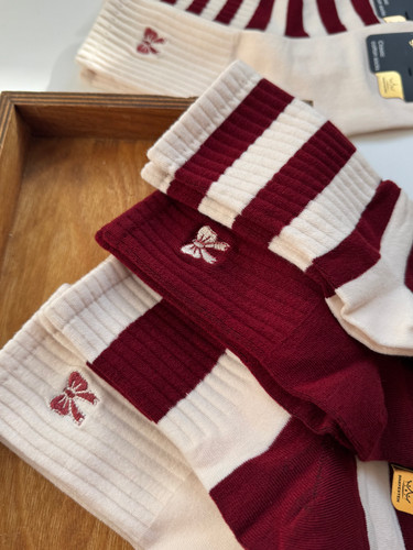جوراب نیمساق گلدوزی پاپیون با تم زرشکی🎀